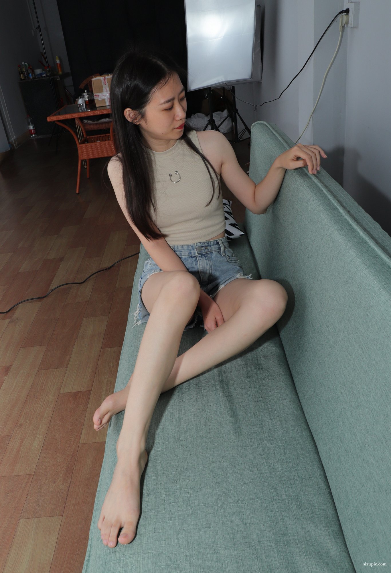 [Pary学生模拍] NO.007 极品美女小芳大冬天穿上性感吊带展示美脚 B